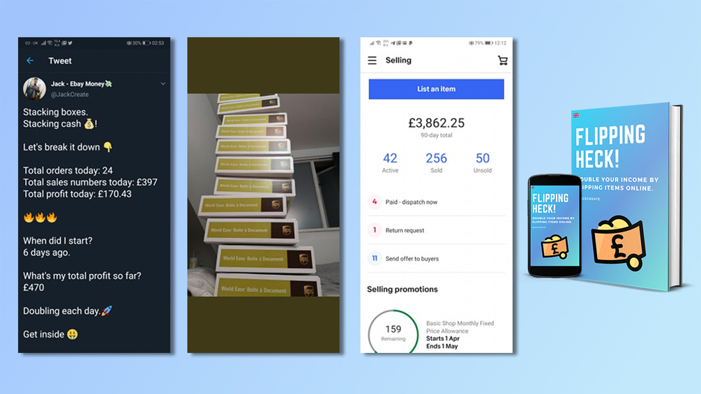 "I had recently started flipping on Ebay and had already had help from Jack, but this ebook was just what I needed to fine-tune the in’s and out’s involved with postage and couriers as well as what to say and what not to say when dealing with customer complaints. This is the perfect tool for anyone interested in flipping on Ebay as he covers everything from account set up to listing items to where to source items! 100% recommend." -@capfc